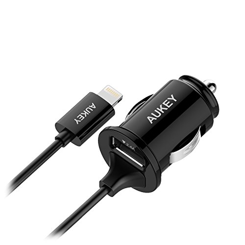 -. Feature : Turn an unused cigarette lighter outlet in your car into a powerful iPhone and USB charging point that sits flush to the edge of the outlet. / Charge two devices simultaneously at full speed with 2.4A of dedicated adaptive power output from the MFi Certified Lightning Cable and additional USB port / Compatible with all USB powered devices including Apple & Android smartphones & tablets / Built-in safeguards protect your devices against excessive current, overheating, and overcharging / Package Contents: AUKEY CC-C5 Car Charger with Built-in 3.3ft MFi Lighting Cable, User Manual, 24-Month Warranty Card