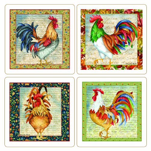 CoasterStone AS2110 Absorbent Coasters, 4-1/4-Inch, Pretty Roosters, Set of 4