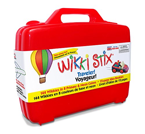 Bilingual Wikki Stix Traveler (English and French) Wikki Stix are still the best travel toy out there! The Traveler makes it easy to keep kids quietly and happily entertained without, "Are we there yet?" Bright, colorful carry case contains 144 Wikki Stix, 12-page activity book of ideas and illustrations, two Mini Play Paks, plus a QR code with even more instructions and Wikki fun! There's also a colorful I.D. sticker to personalize the case. Not just for major trips, The Traveler is great to have along any time. Outside packaging and information are bilingual. Inside idea booklet and sticker, are English only, at this time.Feature