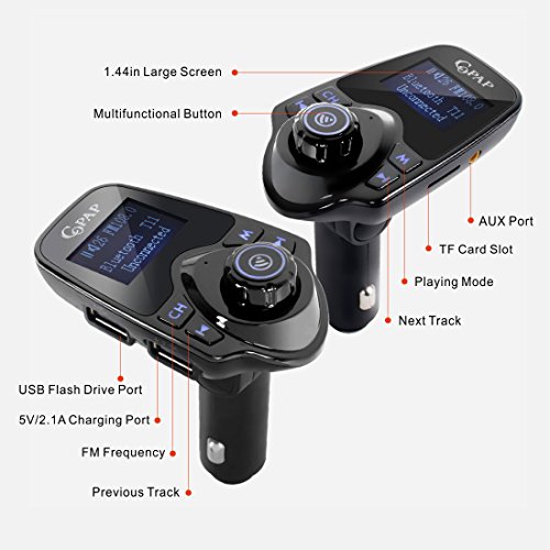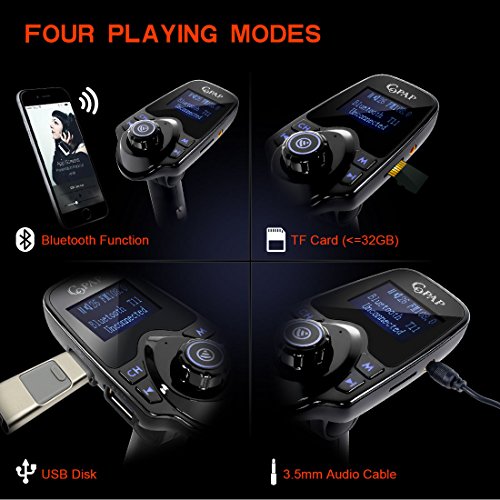 Description: This kinds of Bluetooth FM transmitter has two USB ports, one designed for charging and other for reading USB files. Its Stylish LED Screen can show incoming phone numbers, FM frequency, volume, voltage level, song names from USB, flash drive or TF card. It can also monitor voltage of car battery. It provides multi-solution for your hands-free driving like answer, hang up, reject and redial the phone by bluetooth. This device has memory function. It will automatically connect to its the last paired Bluetooth devices when powered on next time. The flexible neck can be adjusted to any angles and fit many types of device like iPhone, iPad, iPod, HTC, Galaxy, Blackberry, MP3 Players, Digital Cameras, PDAs, Mobile Phones. It is a good choice for you if you need a Bluetooth FM transmitter. Specification: Bluetooth: Bluetooth Version: V3.0 EDR Frequency: 20 h- 20KHZ Sensitivity: -41db / 3db 360 Voltage: 5 V / - 0.5 Working Current: 45mA (Max) Stand-by Current: 25mA (Max) Frequency: 2.402 ~ 2.480 ghz Effective Range: 5meters Sensitivity: -92 dBm RF Output: 4 dBm Frequencies: FM: 87.5MHZ-108.0MHZ Transmitted Power: 87 dBuv / 107 dBuv Effective Range: 2 Meters Package Included: 1* FM Transmitter 1* 3.5mm Audio Cable 1* User Manual Note: This device id compatible with most of the mobile phones, except of a few mobile phones that are not available to use parts of above functions. 0 |
