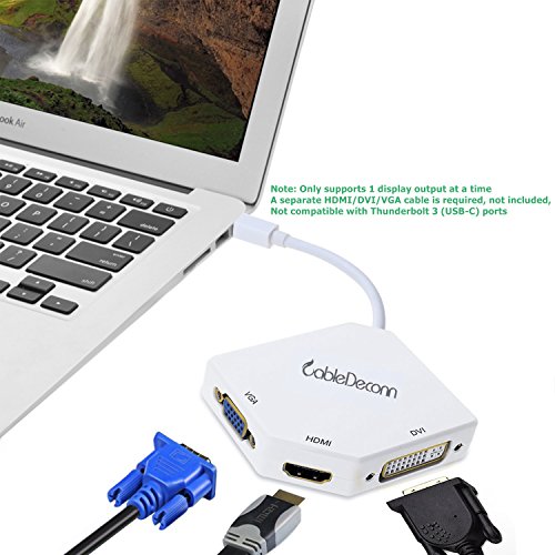 3-IN-1 The Cobra Appearance Multi-Function Thunderbolt Mini DisplayPort Male to HDMI/DVI/VGA Adapter Cable converter,3-IN-1 The Cobra Appearance Multi-Function Thunderbol Mini DisplayPort Male to HDMI/DVI/VGA Adapter Cable,Note: Only supports 1 display output at a time A separate HDMI/DVI/VGA cable is required, not included, Not compatible with Thunderbolt 3 (USB-C) ports