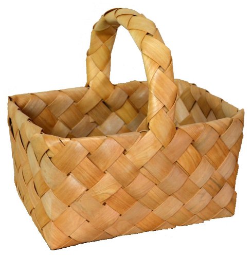 It is a rustic texture basket knitted with wood skin in a Scandinavy style.