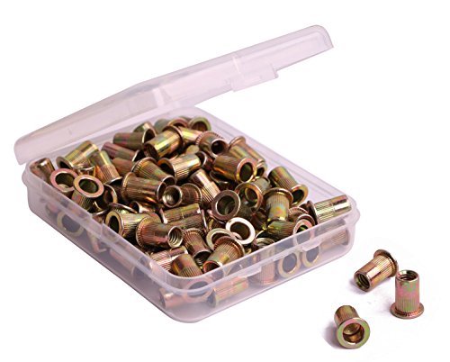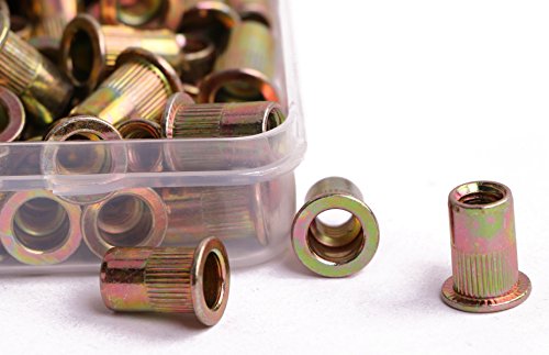 Shapenty Zinc Plated Carbon Steel Rivet Nut Flat Head Threaded Rivnut Insert Nutsert 1/4”-20, 100PCS
