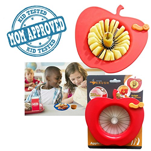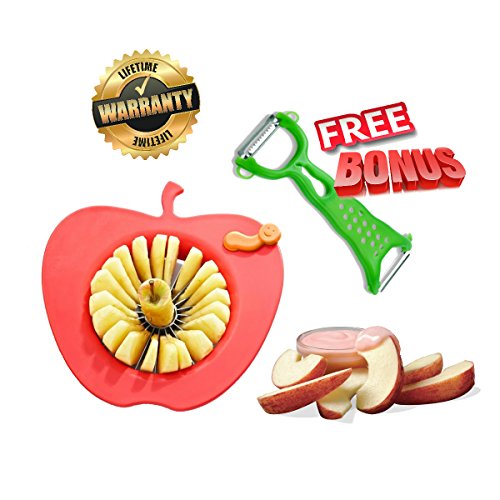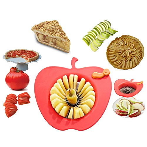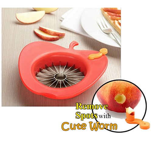 - ★ EASY & PRACTICAL KITCHEN AID FOR EVERYDAY USE Cute worm detaches quickly to cut out and remove spots or blemishes in your fruit. Oversized apple shaped handles give you great leverage and control and the stainless steel blades stay sharp over a lifetime of use. The slicer is also useful with other fruits and vegetables. Wide handles take the pressure off your hands, and sharp, stainless steel blades rock back and forth and push through fruit and cuts perfect slices