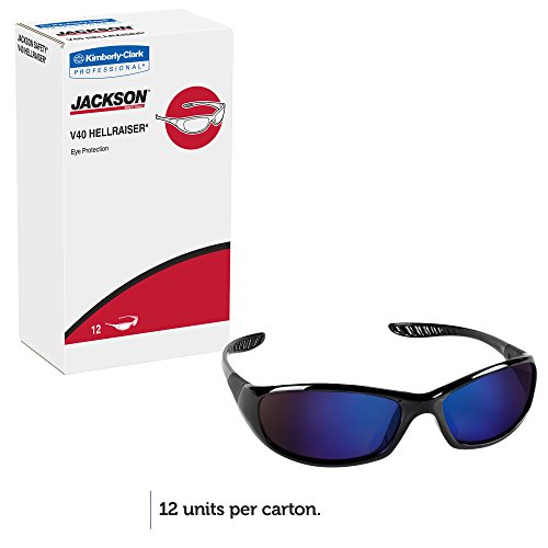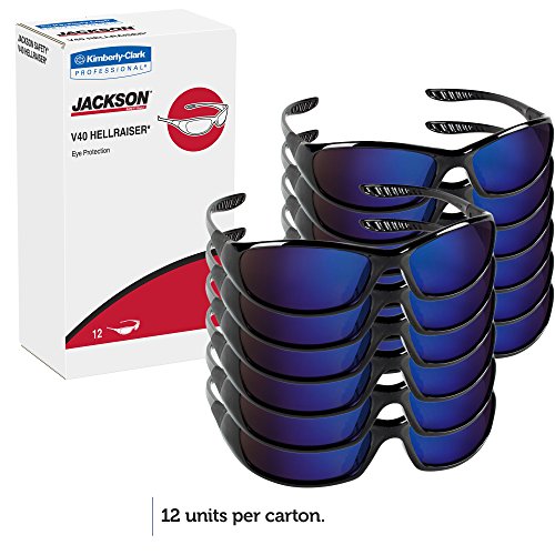 Jackson Safety 20543 V40 Hellraiser Safety Glasses, Blue Mirror Lenses with Black Frame (Pack of 12)