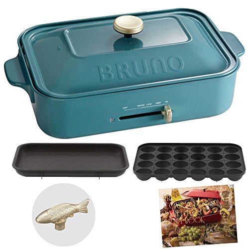 BRUNO 콤팩트 핫 플레이트 + 레시피(요리처리법) 북 + 데코레이션 노브 피쉬 3점 세트