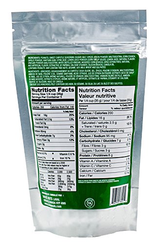 Peppery Ingredients: Peanuts, sweet chipotle seasoning, including sugar, salt, spices, onion powder, garlic powder, lemon juice, natural and artificial flavor, canola oil. (May contain tree nuts, sesame, milk, wheat and sulphites.)