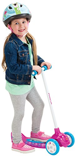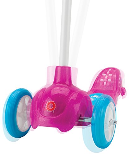 -. Feature : It's your little rider's time to shine with the glitter and glam of the Lil' pop / New and improved steering with tight turning - 20 degree turning angle (50% improvement over the kid) / Features tilt-to-turn steering, three-wheel stance, steel handlebars, foam grips, and Polymer wheels / Extra-wide deck, slip-resistant Polypropylene with glitter and 12 LED lights / Recommended for ages 3 and up; supports riders up to 48 pounds