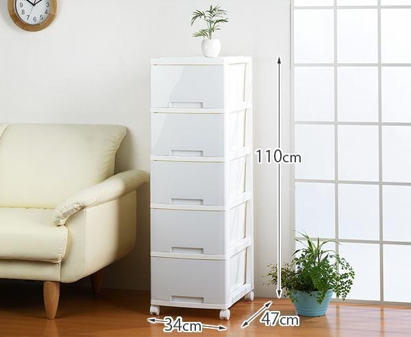 | ちょっとしたインテリアにもなる、おしゃれなチェスト!!奥行が広めなので、たたんだYシャツもすっぽり収納いただけます。工具不要で組み立てができます。キャスター付きだからお掃除する時も便利です♪ |
