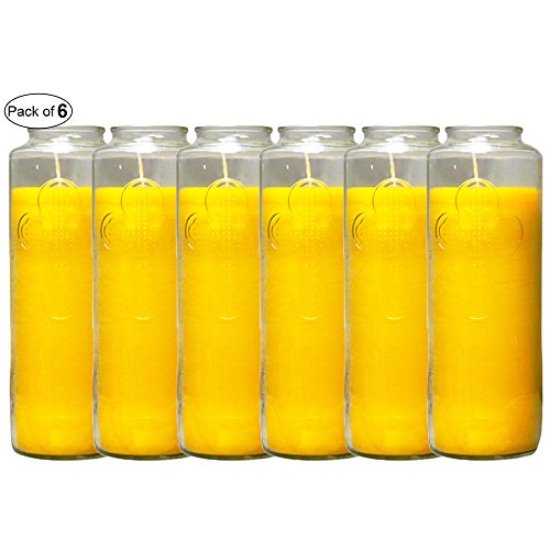 Glass Candle Solid Yellow With Cross Sign (Pack of 6)