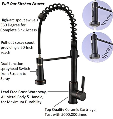 Refin Semi-Pro Kitchen Faucet, Durable and Sturdy Pull Out Kitchen Faucet with Sprayer, Oil Rubbed Bronze Kitchen Sink Faucet