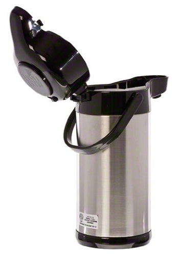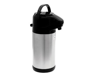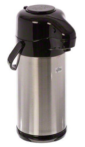 Studio : Update International Publisher : Update International Binding : Kitchen Product Description The Sup-R-Air stainless steel air pot with black push-button top is great for such stations. It features a push-button pump for easy dispensing and a stainless steel body and liner that will maintain proper serving temperature. Durability is no issue with this air pot, as both the body and liner of this item are virtually unbreakable. Its black push-button indicates that it contains regular coffee. Excellent for buffet and coffee stations, air pots allow customers to fill their own cups of coffee when the multitude of customers does not permit individual service by members of the wait or catering staff. Comes with 101-ounce capacity and 6-piece per pack. Measures 15-1/8-inch height by 5-1/2-inch width. 0