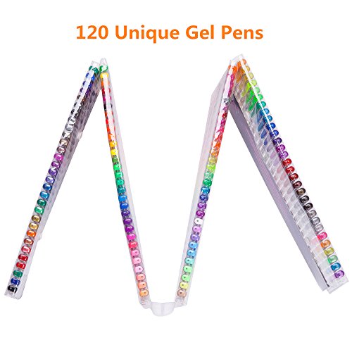 MORE COLORS: Since you love using gel pens bring your coloring pages to life, we decided to creat a set that exclusively contains all of 120 colors with NO DUPLICATE (Including 28 Glitters, Special Brown,Brown Earth Tones).This will give you a varity of 120 coloring gel pens,the total 240 pens are enough to make your artwork pop right off the page