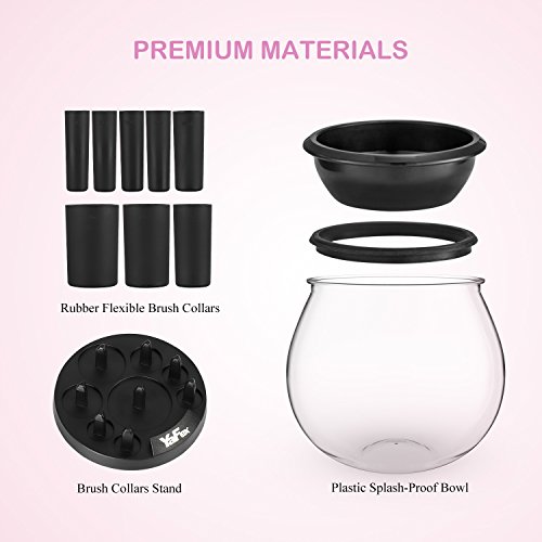 - PREMIUM MATERIALS - Premium plastic splash-proof bowl, eco-friendly, durable and unbreakable. The 8 sizes of rubber collars, flexible and durable, could hold the brush tightly