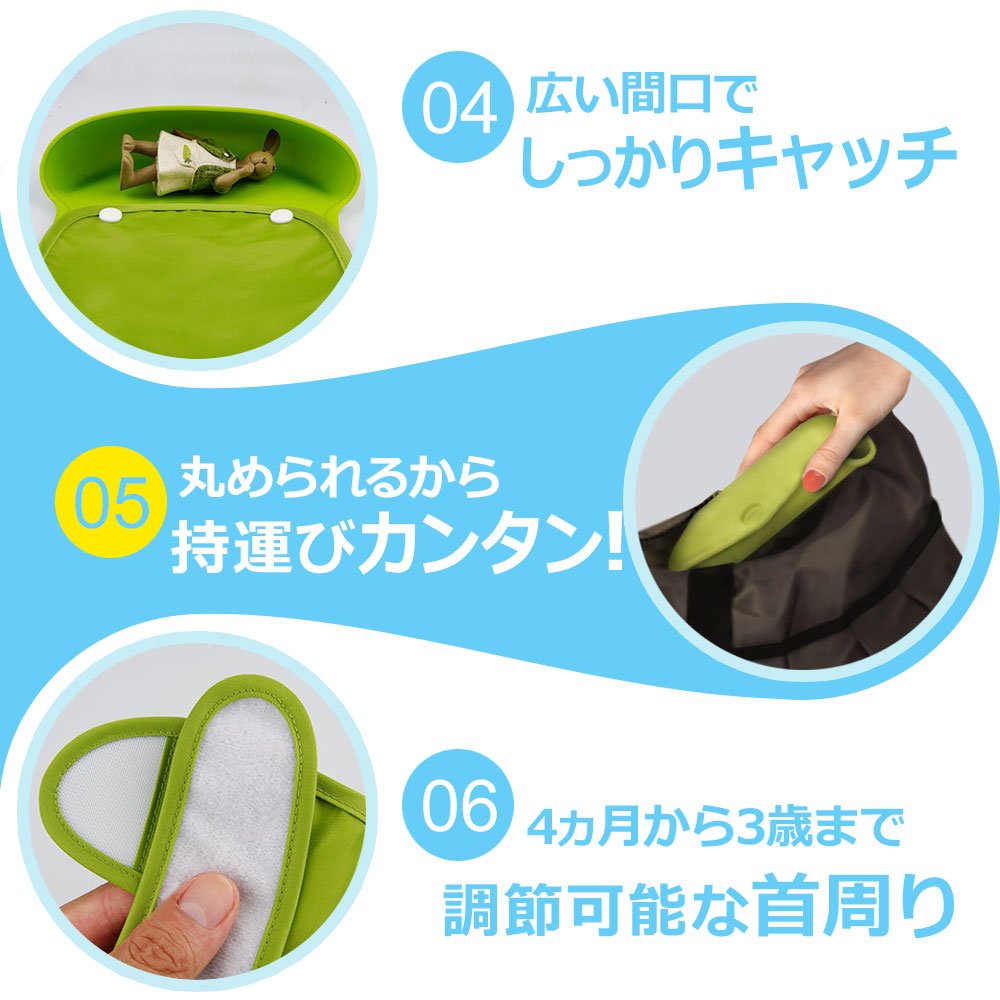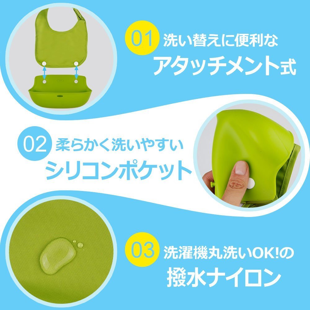 The silicone pocket has a large frontage so that babies' spilled foods, drinks, drool etc can all be caught and deepened in size.