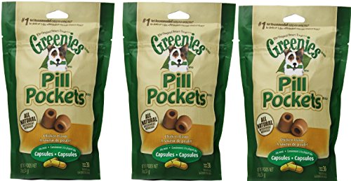 -. Binding : Misc. -. Brand : Greenies -. EAN : 0719707986646 -. Feature : Contains 3 x 7.9-oz., 30-count pack of GREENIES PILL POCKETS Treats for Dogs Chicken Flavor Pack Bundle / Greenies Tablet Snack for Dogs #1 Vet Recommended choice for giving medicine* / Best Value Deal for Dog Treat Tablets - Chicken Flavor Snack Treats for Small Medium & Large Dogs / A low-calorie, healthier alternative to human food Easy to use; simply fill, pinch, and give / FREE BONUS PET FOOD TRAVEL LID WITH EVERY PURCHASE ONLY FROM CRAZY4BARGAINS? -. Label : Greenies -. Manufacturer : Greenies -. PackageQuantity : 3 -. ProductGroup : Pet Products -. ProductTypeName : PET_SUPPLIES -. Publisher : Greenies -. Studio : Greenies -. Title : Greenies Pill Pockets Capsules Tablets Bundle Chicken Flavor 3 Pack for Dogs W/ Bonus Pet Travel Lid -. UPC : 719707986646