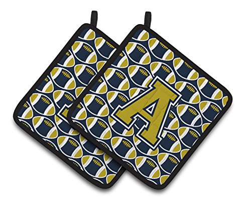 Caroline's Treasures Letter a football Blue & Gold Pair of Pot Holders CJ1074-APTHD, 7.5HX7.5W, Multicolor