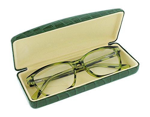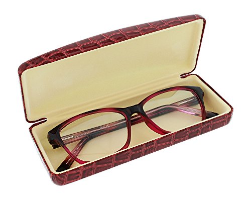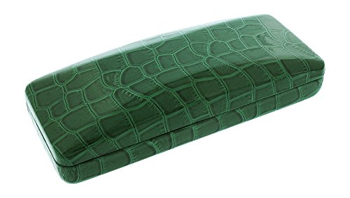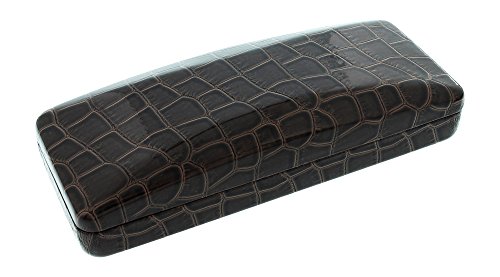 Binding : Apparel Product Description Indulge yourself with these elegant and glossy vinyl hard clamshell style cases with an embossed crocodile design. They are available in five fabulously rich colors; brown, gray, green, navy and red. These lustrous rectangular shaped, metal bodied cases measure 6 inches long 2.38 inches high and 1.38 inches deep and each are lined with plush styrene to help keep your glasses protected as well as a strong metal hinge to keep your case closed tight. This elegant and polished high quality case will make the perfect accessory to any pair of small to medium frames. So come on ladies, indulge yourselves, get one, two, or all these luxuriously rich looking crocodile cases today! 0