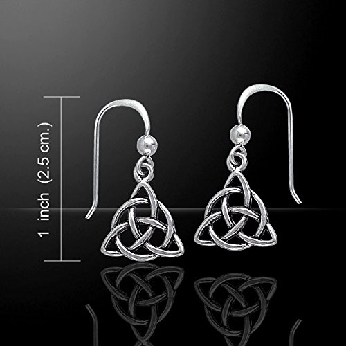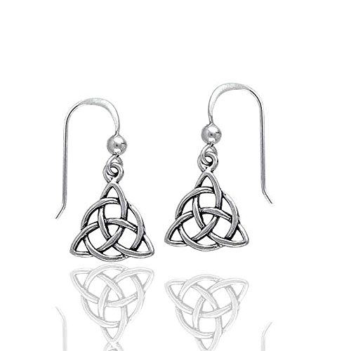 Triangular shaped, the Triquetra knot is detailed in these small sterling silver earrings. The Triquetra knot is a powerful symbol; Christians hold that the Triquetra represents the holy trinity while to the Pagans the Triquetra represents the three aspects of the Goddess. Marked 925 for solid sterling silver.Feature