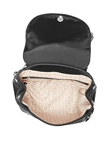 Studio : GuessFactory Publisher : GuessFactory Product Description Carry your essentials in style with this backpack, complete with a hidden zipper pocket on the magnetic flap closure, removable question mark keychain and silver-tone logo hardware. Multipurpose pockets and saffiano faux-leather straps. 0