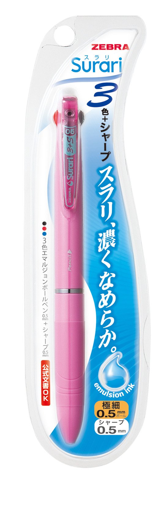 Zebra Multi Function Surari Black/Red/Blue Ink 0.5mm Ballpoint Pen 0.5mm Mechanical Pencil Light Pink Body (B3SAS11-LP)