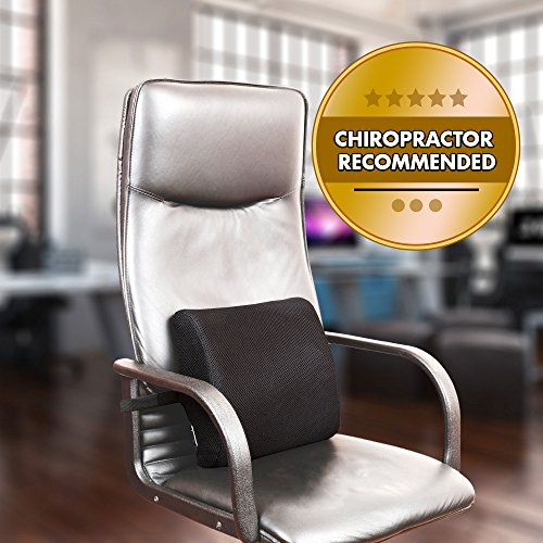 Lower Back Lumbar Support Pillow - Instant Back Pain Relief For Office Chairs & Car Seats - Orthopedic Memory Foam Cushion For Improved Posture - Bonus Back & Spine Health E-book Included