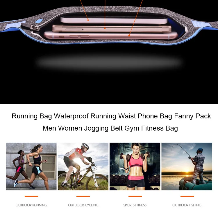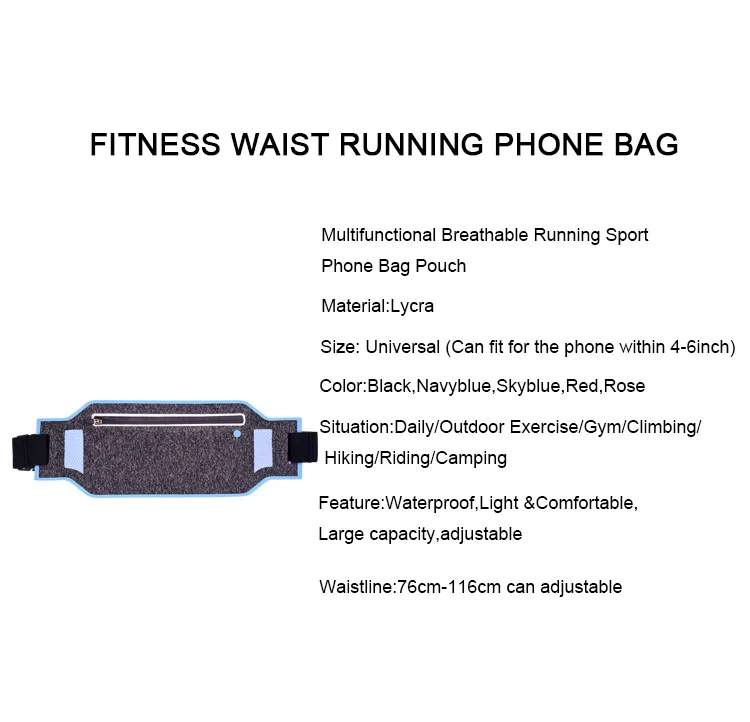 Features:Ultra Thin Fitness Waist Running Phone Bag