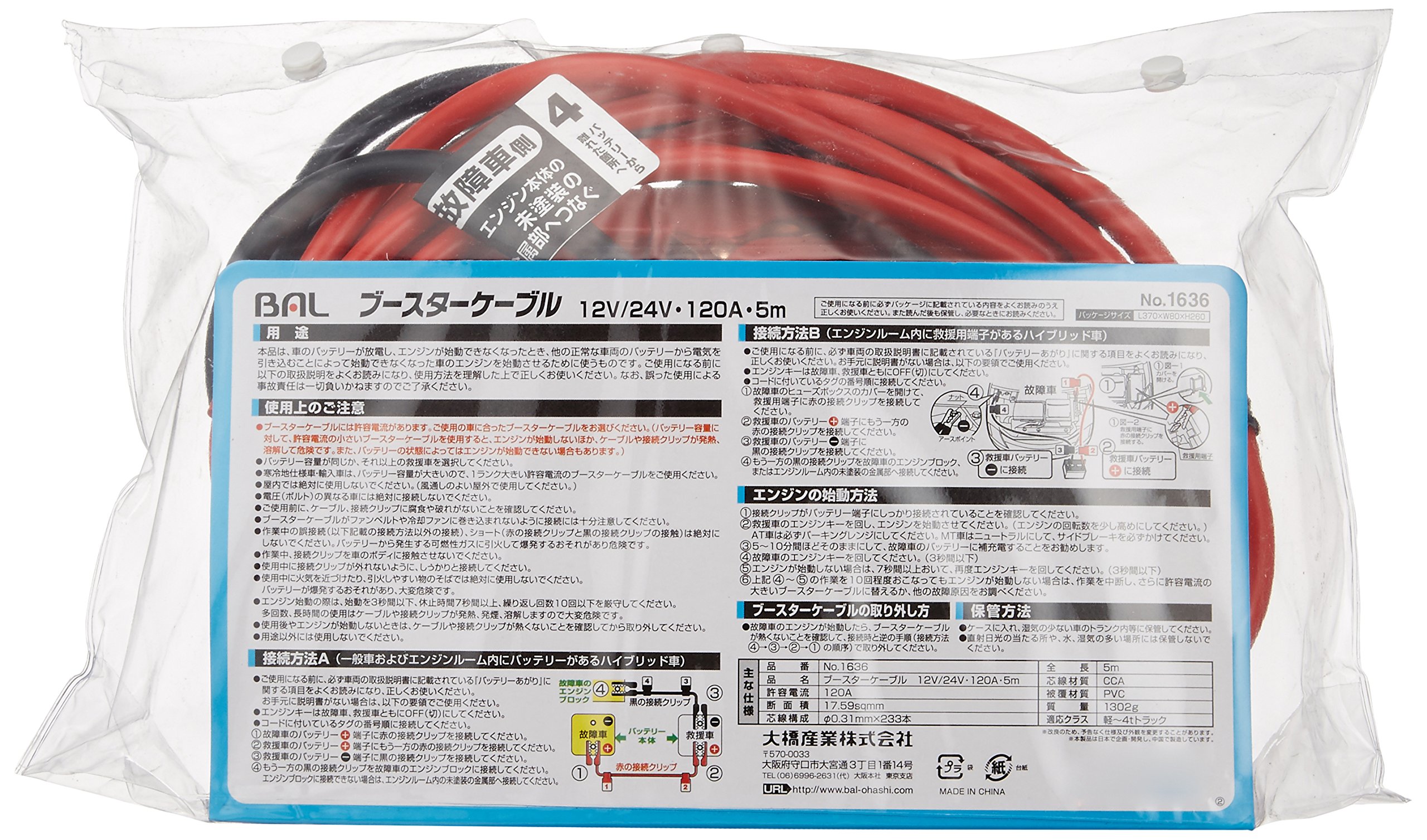 BAL (Ohashi industry) booster cable 120A5M 1636