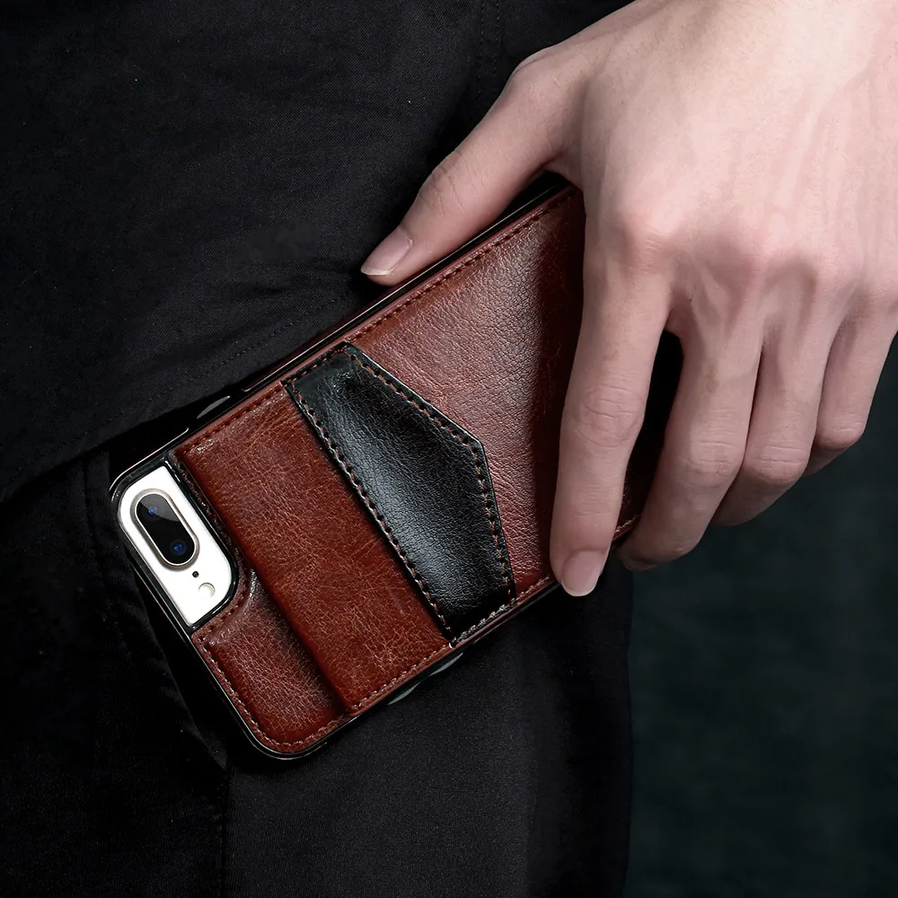 Feature 1:Retro Business with Card Slot Kickstand Holder Phone Case Cover Capa