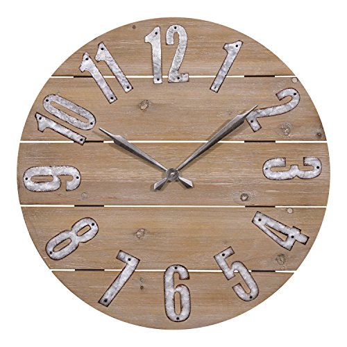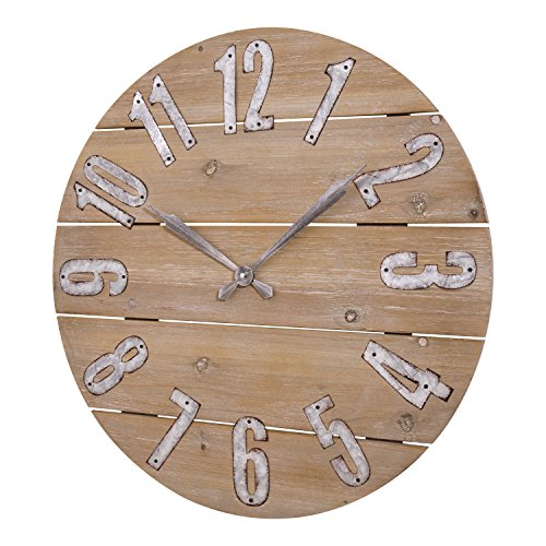 -. Feature : Wooden pallet designed clock / Silver metal numbers and hands / Silent sweep movement / Precise quartz time / Requires one AA alkaline battery (not included)