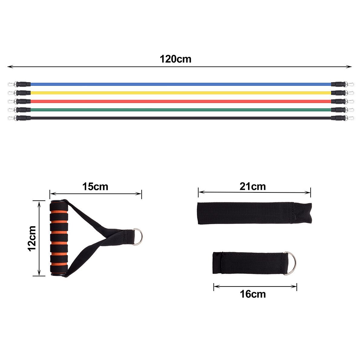 Strength Training tube has 5 staircases, can be used one by one, as well as combining different bands.