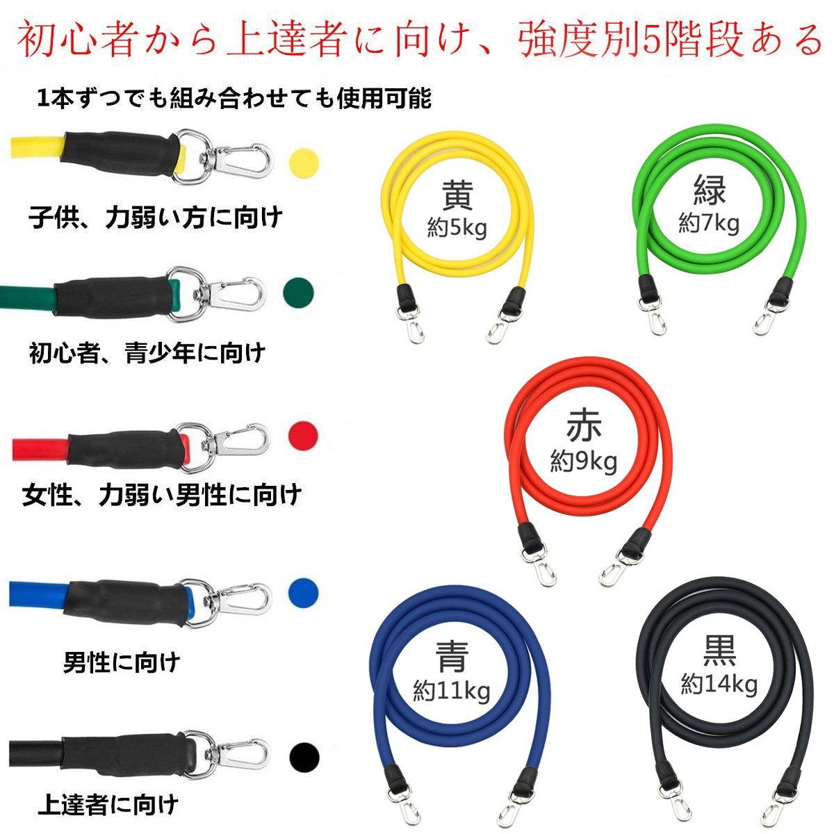 You can load according to your own ability, choose strength level by tube color, choose tube suitable for your own muscular strength, start pectoralis, back muscles, shoulder, arms and whole body training exactly
