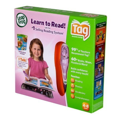 -. Binding : Toy -. Brand : LeapFrog Enterprises -. EAN : 0617215410373 -. Feature : Learn to read with the #1 selling reading system!" Tag is recommended by 99% of teachers" / Use your Tag Reader to bring this story to life / Tag storybooks and learning activities help children build reading skills such as vocabulary, phonics and reading comprehension / The Tag library includes over 40 books and games based on favorite TV, movie and classic tales / Parents can connect the Tag Reader online to see their child's play and learning on the LeapFrog® Learning Path -. IsAdultProduct : 0 -. Label : LeapFrog -. Manufacturer : LeapFrog -. ProductGroup : Toy -. ProductTypeName : TOYS_AND_GAMES -. Publisher : LeapFrog -. Studio : LeapFrog -. Title : LeapFrog TAG Reading System, Purple and LeapFrog Tag Activity Storybook: Tangled Disney's story of Rapunzel -. UPC : 617215410373