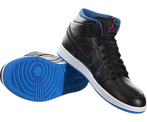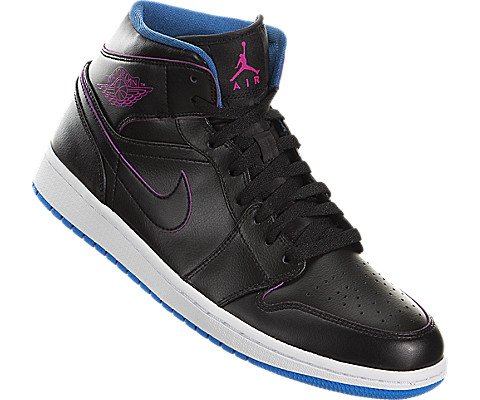 Nike Men's Air Jordan 1 Mid Black/Fire Pink/Photo Blue Basketball Shoe - 12 D(M) US