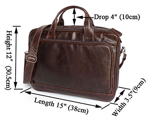 -. Feature : Dimensions: 14.8" l x2.5" w x11" h;free gift PU leather pencil case, get promotion code below / Material:Top Layer Real Cow Thick Leather,Additional detachable and adjustable shoulder strap / Big main compartment, Multi-function storage pocket(A4 papers, business cards slots,pens, cards, key, ect.) / Front pocket organization for all your business needs;Smart pocket slides over uP.R.Ight handles for easy mobility / Take it as laptop Briefcase, Shoulder bag(strap inside) or Messenger bag ,Full Grain Soft Genuine Leather.
