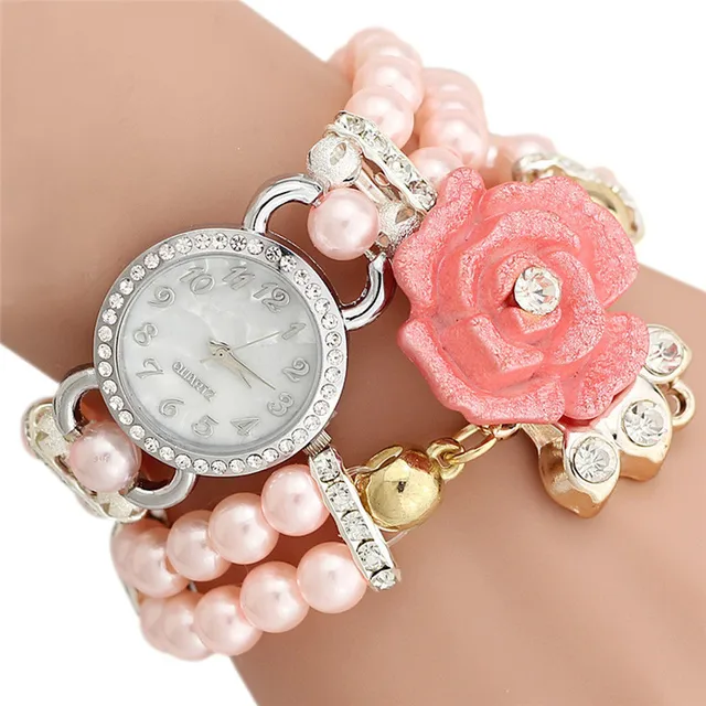 | [해외] 여성 시계 브랜드 개인 꽃 진주 포장 팔찌 시계 숙녀 패션 학생 시계 erkek 콜 saati |