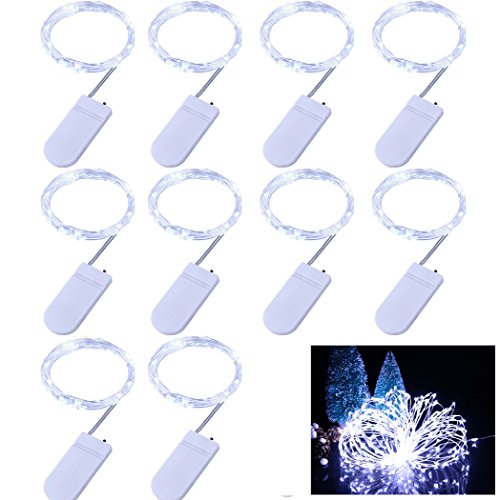 Pack of 10pcs LED Moon Fairy Lights 20 Pure White Micro Starry LEDs on 3.5Ft Copper Silver Extra Thin Copper Wire, Cr2032 Batteries Included
