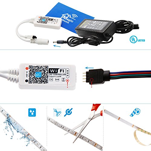 - WIFI SMART ADJUSTMENT: Along with a 24-Key remote control, each LED light strip can be control via a smartphone, iPhone, iPad, iPod, or even the Alexa Google Home Assistant & IFTTT by downloading MagicHome Pro/MagicHue APP