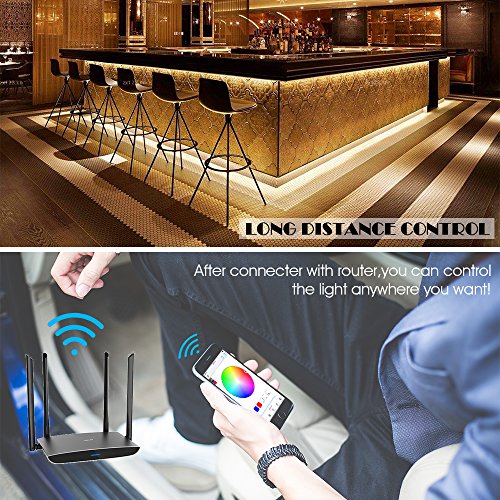 WIFI LED Strip lights, Smart Phone Remote Controlled Music Rope Light Kit, Alexa IFTTT Google Home Compatiable, DC12V 300LEDs 16.4ft 5050RGB, Dimmable Color Changing Lighting IOS Android(Waterproof)
