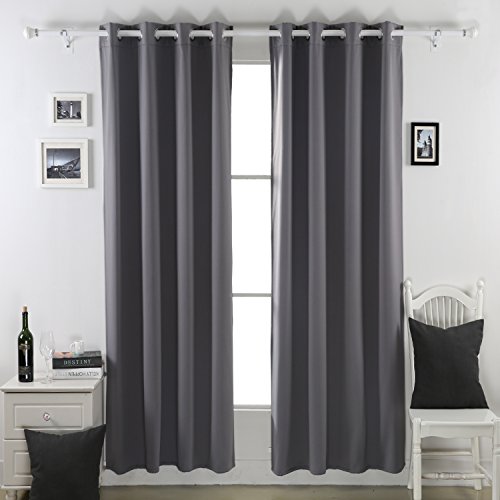 Deconovo Solid Thermal Insulated Grommet Blackout Curtain Panel blocks out 99% of light, hangs luxuriously in your home. This heavy duty solid curtain does it all.