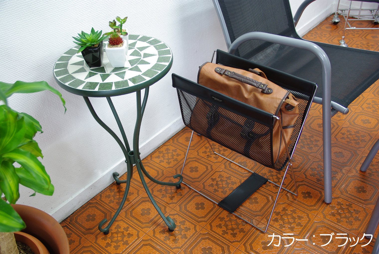 Side wagon mesh × leather Brown R-345BR
