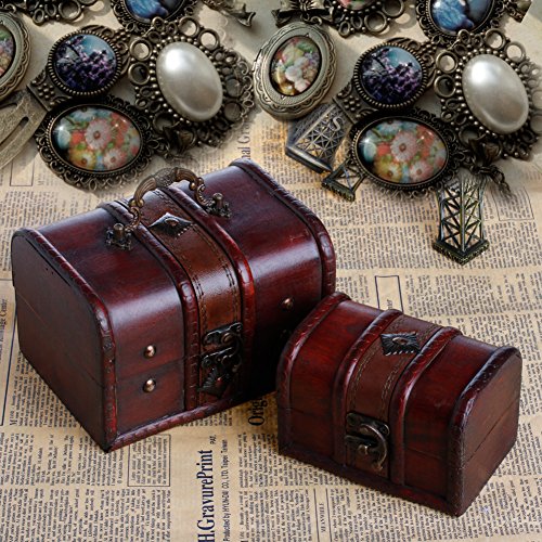 -. Title : Chunlin 2pcs Set Wooden Pirate Jewellery Storage Box Case Holder Vintage Treasure Chest