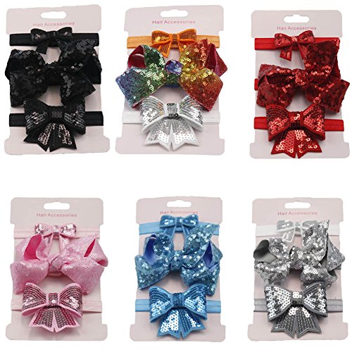 Product Description Feature: Fashionable sequins bowknot headband for your sweet baby Different colors to meet with various style Stretchable band to fit for most baby's head Occasion:Baby Shower, Birthday Party,Family Photo