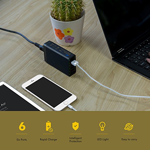 5V 12A 6-Port USB Charger PowerPort 6 for Nextbook Flexx 11 NXW116QC264, Nextbook Flexx 10 NXW101QC232, Pioneer DDJ-SX DDJ-SX2 Serato DJ Controller, CCTV Wireless Router D-Link TP-Link ADSL Cats