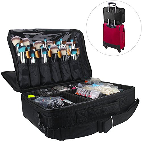 MLMSY Makeup Train Case 3 Layer Cosmetic Organizer Beauty Artist Storage Brush Box with Shoulder Strap(L-Black)