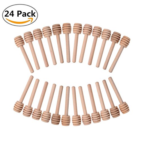 24 Pack Mini Wood Honey Dipper Sticks Server for Honey Jar Dispense Drizzle Honey and Wedding Party Favors - 3 Inch Individually Wrapped