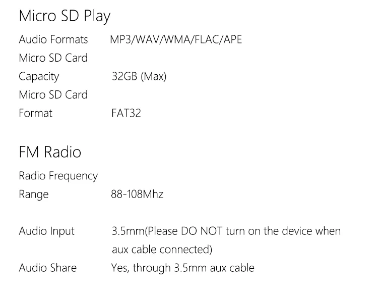 Features:Bluetooth,TF Card Play,FM Radio,Audio Input