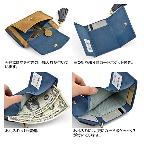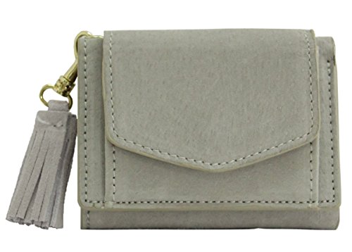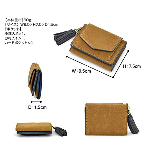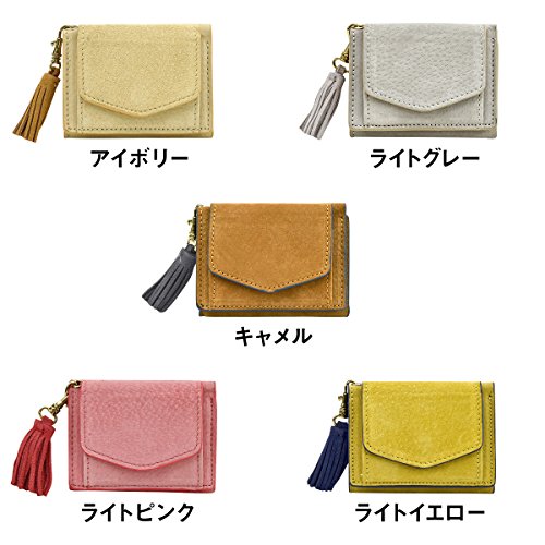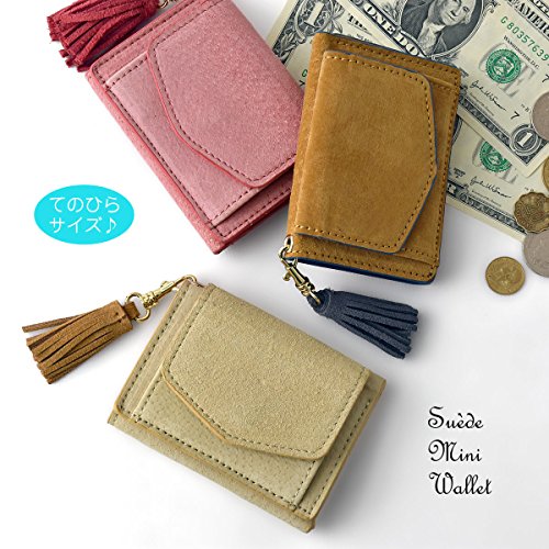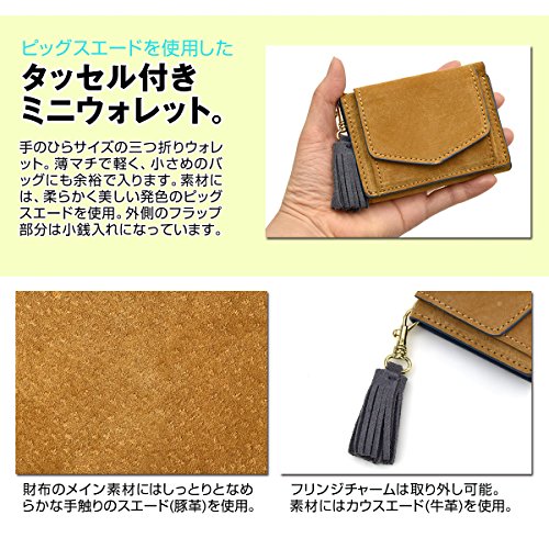 -. Feature : 小さめプチバッグにもすっきり納まる、ピッグスエード(本革)を使用した、タッセル付きミニウォレットです。※ギフトボックス付き / 手のひらサイズの三つ折り財布。薄マチで軽く、パーティーバッグやトレンドのプチバッグ等にも余裕で収まります。 / 素材には、柔らかく美しい発色のピッグスエードを使用。外側のフラップ部分は小銭入れになっています。 / 【サイズ】W9.5×H7.5×D1.5(cm)  【本体重さ】60g 【開閉】スナップ 【素材】豚革 / 【ポケット】小銭入れ×1、お札入れ×1、カードポケット×4 【生産国】中国