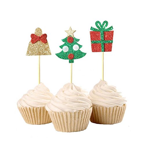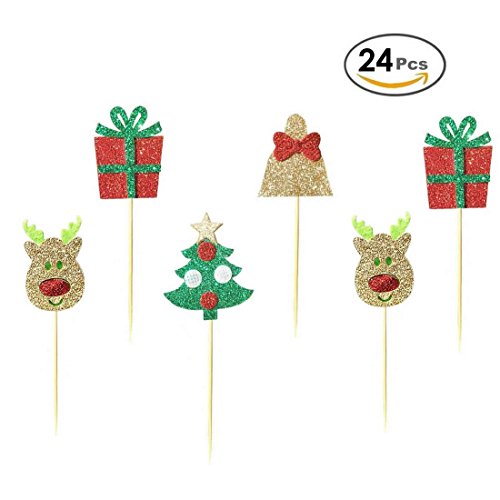 GEORLD 24pcs Christmas Cupcake Toppers Picks,Cake Toppers for home party baby shower birthday Christmas party supplies favors