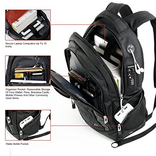 -. Binding : Personal Computers -. Brand : CrossGear -. Department : mens -. Feature : Side-mounted lock.A luggage belt been added to the back of the backpack, so convenient function for fixing the backpack to a luggage trolley. Still, an ant-thief pocket been added for keeping precious items. / Airflow Back System: Multi-panel airflow design provides extra padding for comfort and maximum back support / Organizer Pocket: Interior organizer provides divider pockets for pens, pencils, cell phone and CD's. Exterior Dimensions: 18.5 x 12.5 x 6.0 in. Laptop Compartment Dimensions: 15 x 10.2 x 1.5 in. Weight: 2.2 lbs / Essentials Organizer in front pocket has pockets and slot for all of your accessories and gadgets / External USB with built-in charging cable offers a convenient charging of your electronic device anywhere.Designed for either Micro-USB or Apple products with a USB 2.0 Port. -. ProductGroup : PC Accessory -. ProductTypeName : CARRYING_CASE_OR_BAG -. Title : CrossGear Laptop Backpack with USB Charging Port and Combination Lock- Fits Most 15.6 Inch Laptops and Tablets CR-9003BK-USB